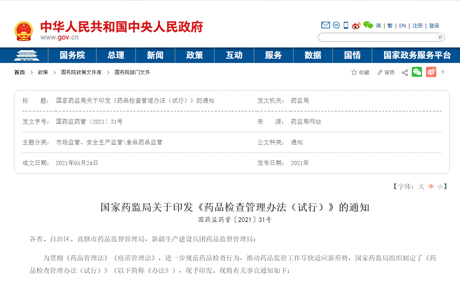 2021年5月28日,國家藥監(jiān)局印發(fā)《藥品檢查管理辦法(試行)》(國藥監(jiān)藥管〔2021〕31號)自發(fā)布之日(2021年5月28日)起實施,最新《辦法》包含10章70條,適用于藥品監(jiān)督管理部門對中華人民共和國境內上市藥品的生產、經營、使用環(huán)節(jié)實施的檢查、調查、取證、處置等行為。同時廢止了原國家食品藥品監(jiān)督管理局2003年4月24日發(fā)布的《藥品經營質量管理規(guī)范認證管理辦法》和2011年8月2日發(fā)布的《藥品生產質量管理規(guī)范...